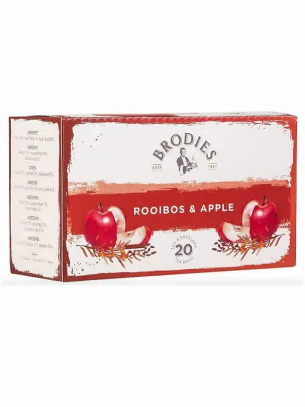 Brodies Rooibos & Jabłko to aromatyczna herbata rooibos bez kofeiny, idealna na każdą porę dnia. Połączenie łagodnego rooibosu i naturalnej nuty jabłka tworzy harmonijny, delikatnie słodki smak. To doskonały wybór dla osób szukających zdrowej, relaksującej herbaty.