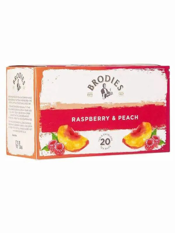 Brodies herbata malinowo-brzoskwiniowa to owocowa mieszanka o intensywnym aromacie malin i soczystej brzoskwini. Idealna na ciepło i na zimno, bezkofeinowa, doskonała na relaks każdego dnia. Znajdź tę wyjątkową herbatę w sklepie Venosa.pl i odkryj owocowy smak pełen naturalnej świeżości.