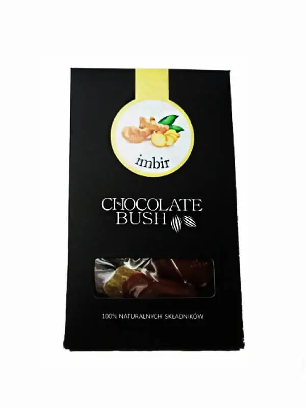 Składniki: imbir kandyzowany (51%), czekolada mleczna (41%) (cukier, tłuszcz kakaowy, mleko pełne w proszku, miazga kakaowa, emulgator: lecytyna sojowa, aromat naturalny wanilia Burbon). Masa kakaowa minimum 33%.