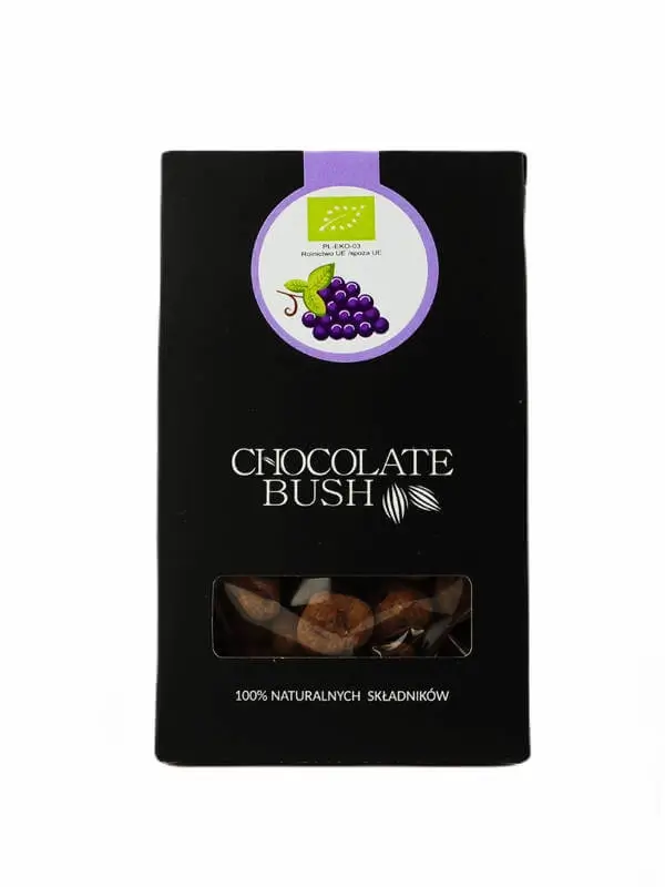 Ekologiczne rodzynki w czekoladzie gorzkiej.