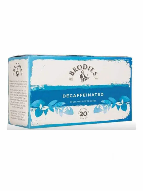 Brodies Decaffeinated to delikatna herbata bezkofeinowa o pełnym smaku i aromacie. Idealna dla osób, które chcą cieszyć się herbatą bez efektów kofeiny. Doskonała na każdą porę dnia i wieczór. Odkryj smak, który nie zaburza snu.