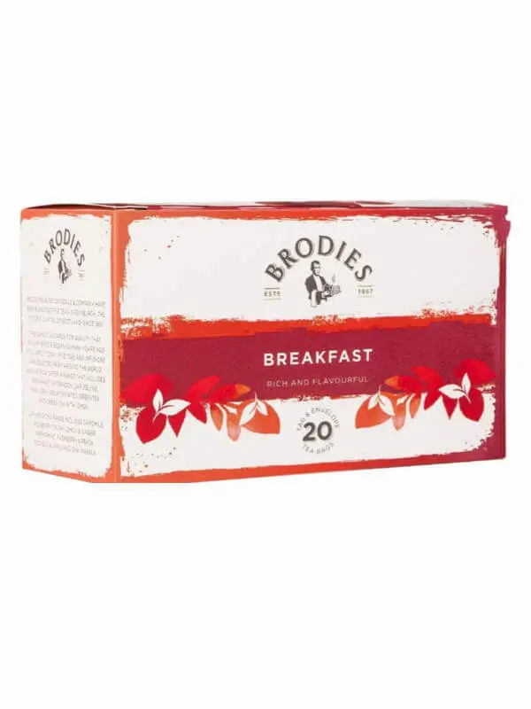 Brodies Breakfast to klasyczna, aromatyczna herbata idealna na rozpoczęcie dnia. Wyjątkowy smak i intensywny aromat sprawiają, że doskonale pobudza i dodaje energii. Idealna do codziennego parzenia.